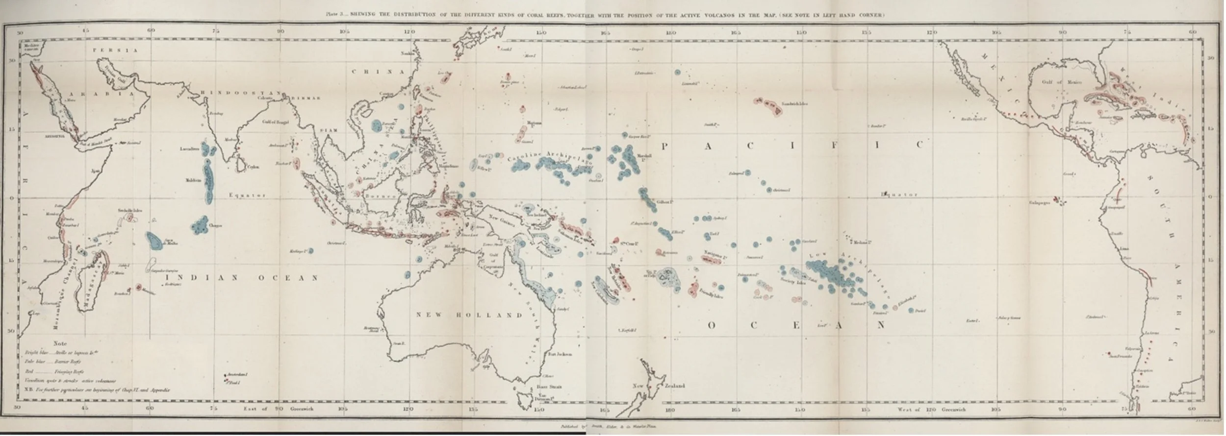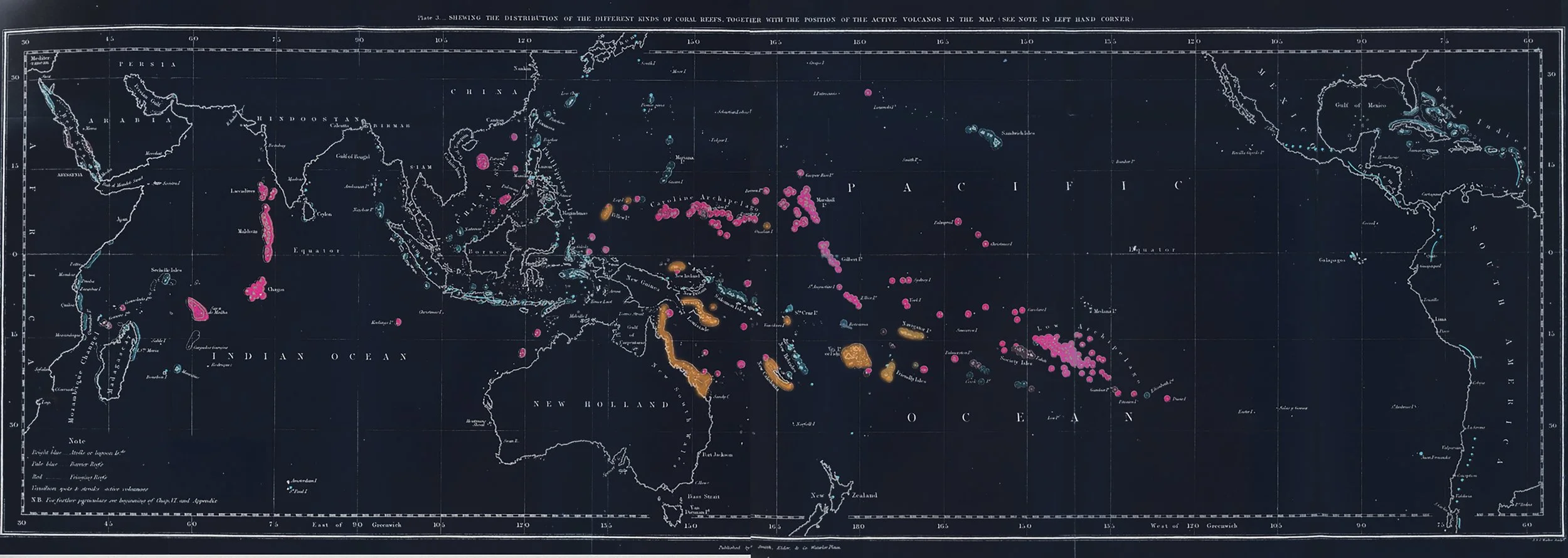 Coral Map by Charles Darwin from his travels on the HMS Beagle (1831-1836)