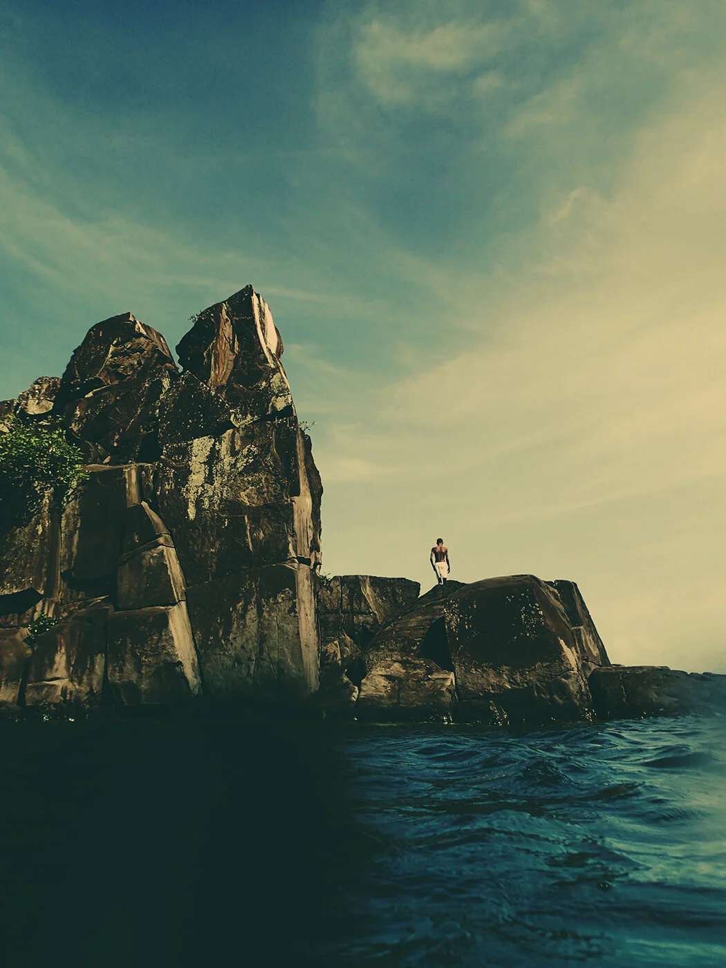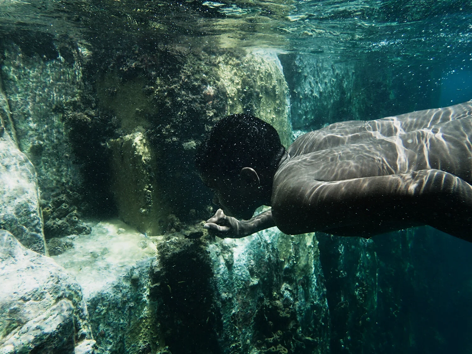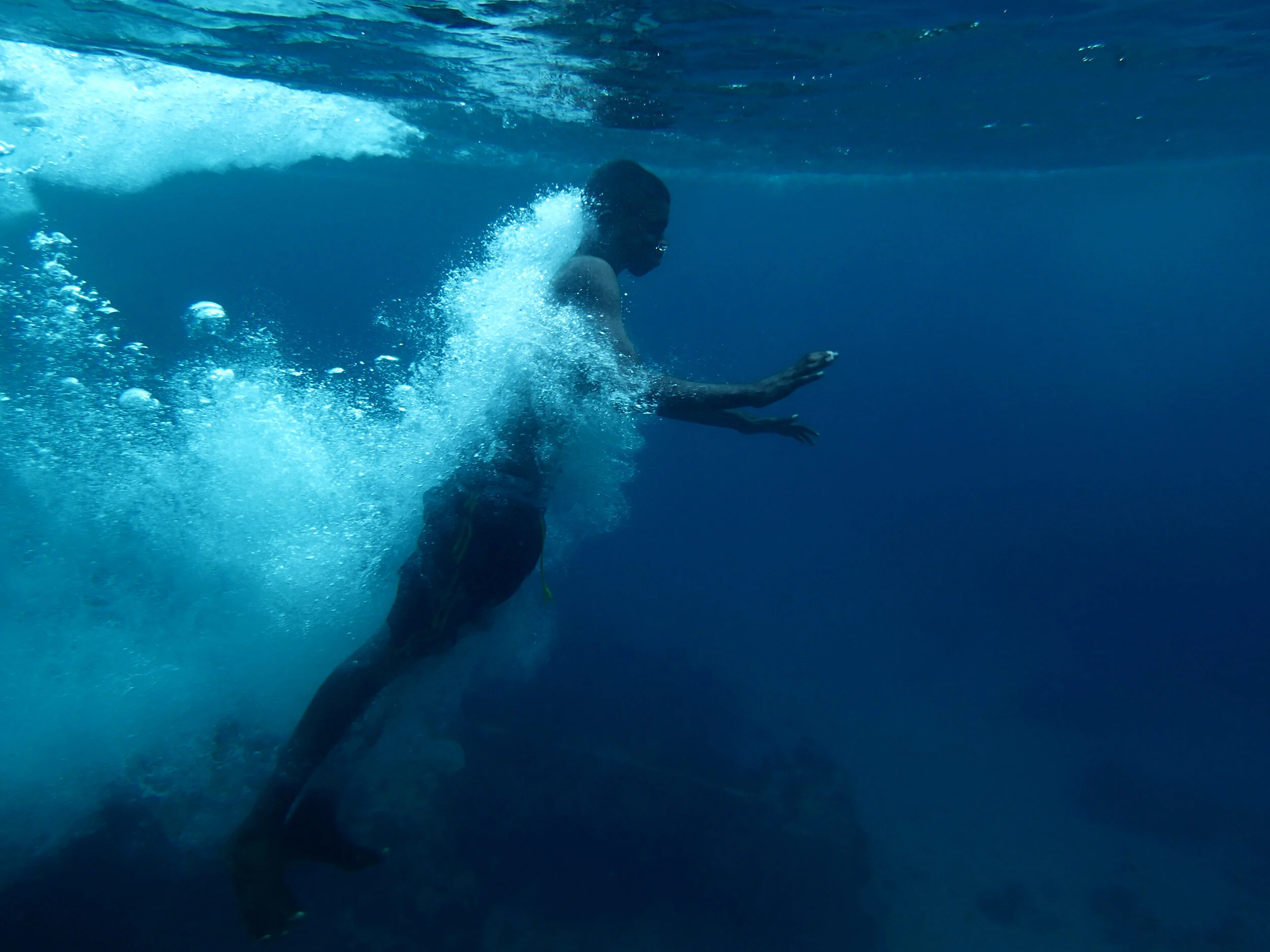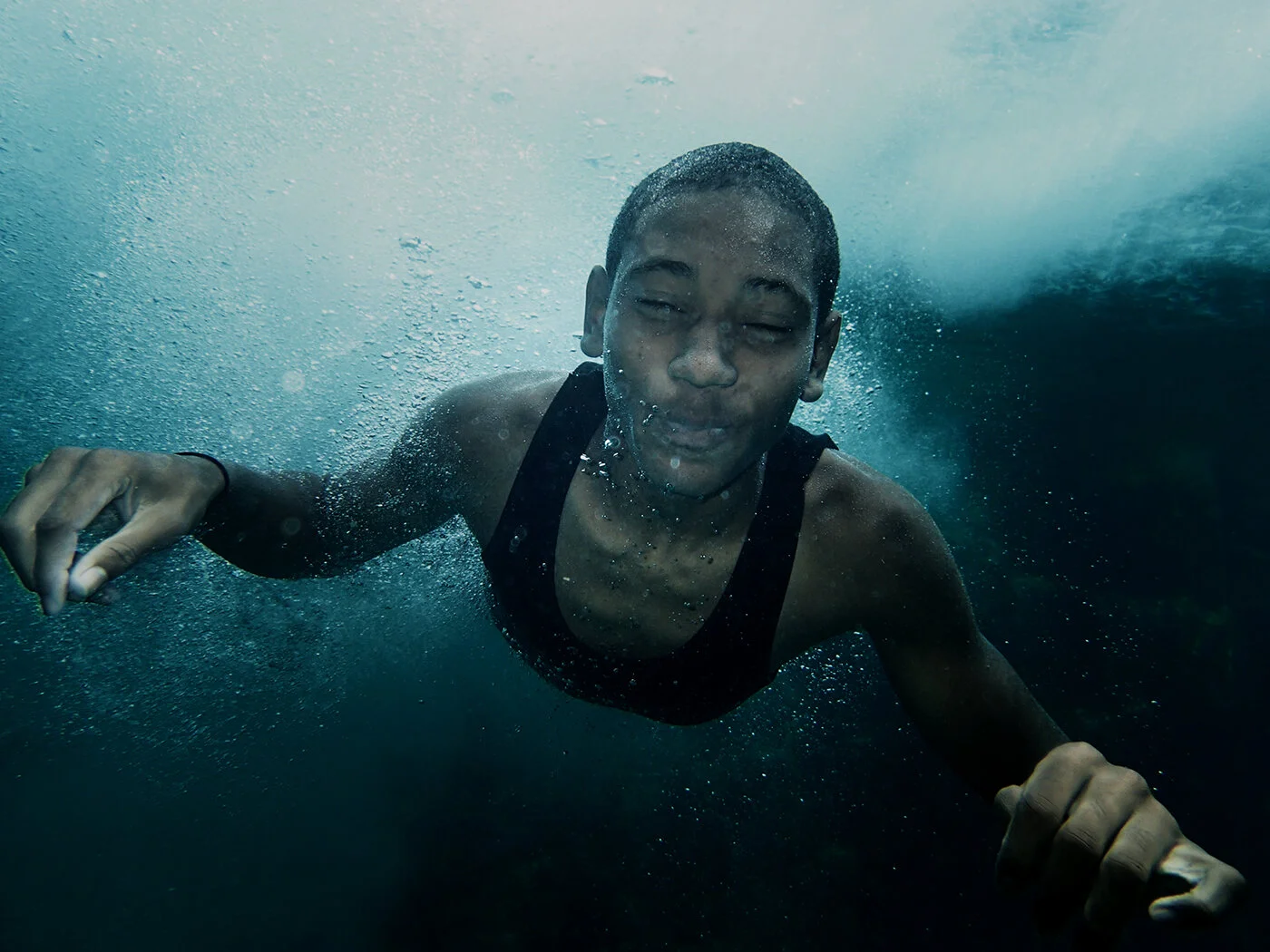 “Believing there to be a link between an under-explored aspect of Caribbean adolescent masculinity and the freedom of bodies in the ocean, I have decided to creatively document boys' interaction with the sea. These pieces capture manhood, snippets of vulnerability and moments of abstraction, that often go unrecognized in the day-to-day. The ocean itself takes on a personality - that of the embracing mother providing a safe space for being - which is both archetypal and poignant. I am as much a subject as the boys for whom I provide solace. The boys climb a large rock, proving their manhood through endurance, fearlessly jump, and become submerged in a moment of innocent unawareness. They emerge having proven themselves. The relationship between myself and the subject is also explored within this paradigm. The subjects are aware of me while posturing, but lose this cognizance when they sink into the water. It is this moment that tells the true story.”